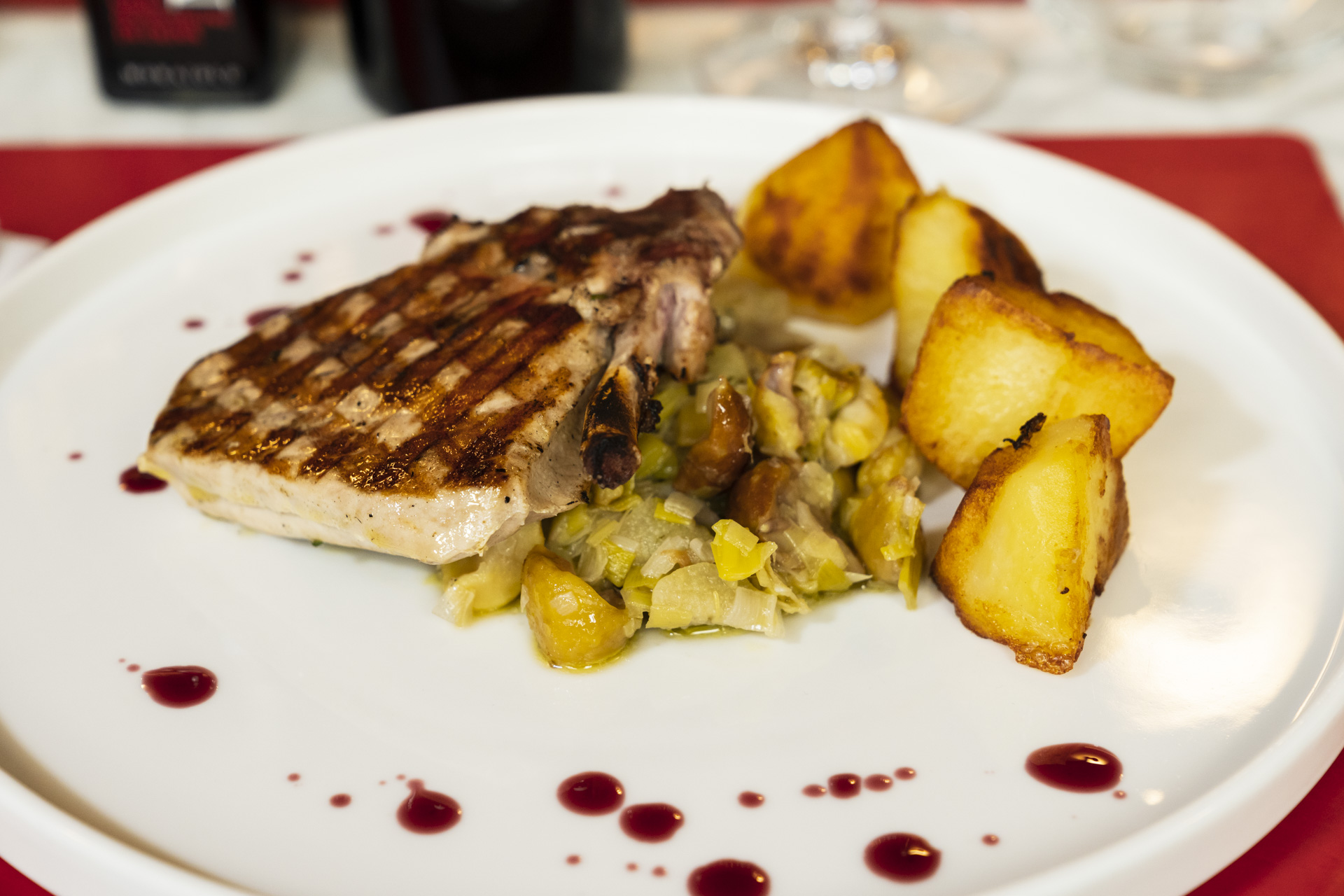 Tra i piatti: la carabaccia, la ribollita, il risotto al piccione, il coniglio con patate all’antica e l’iconica bistecca alla fiorentina, alta quattro dita e servita al sangue.